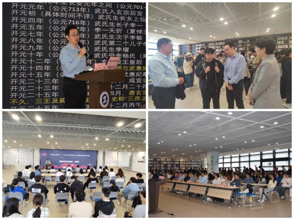 10月18日下午,由陕西公共图书馆服务联盟主办、咸阳图书馆和我校共同承办的“陕西文化大讲堂走进陕西工院”活动在我校经开校区“工院记忆研习空间”举行。本次讲座主题为《两世传奇——唐贞顺皇后武惠妃的发现》,主讲嘉宾为陕西历史博物馆研究馆员呼啸老师。咸阳图书馆馆长杨岳,我校图书馆馆长王丁,副馆长王艳,以及200余名师生在现场参与了本次活动,此外本次活动还通过图书馆“工图书香”微信公众号和咸阳图书馆公众号进行了直播。