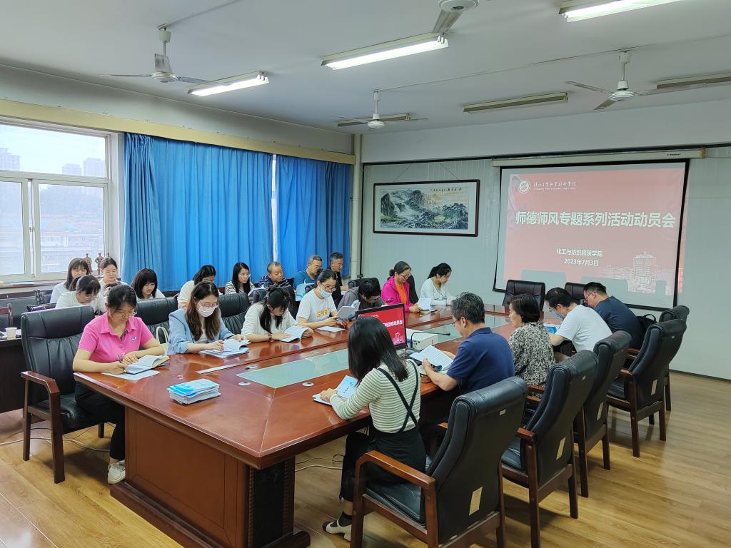 为深入贯彻落实陕西省教育厅《关于在全省教育系统开展师德集中学习教育等相关工作的通知》文件精神,化工与纺织服装学院于7月3日下午在崇文楼811会议室召开师德师风专题活动动员会,全体教职工参加会议,会议由党总支书记贾格维主持。