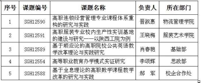 近日,陕西省教育科学规划领导小组办公室下发了《关于下达陕西省教育科学“十二五”规划2012年立项课题名单的通知》(陕教科规办【2012】10号)。