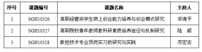 近日,依据中国高等职业技术教育研究会《关于下发中国高等职业技术教育研究会2012-2013年度课题立项的通知》(高职研【2013】17号)文件,我院申报的10项课题,经研究会学术委员会组织评审,有6项获准立项,其中重点...
